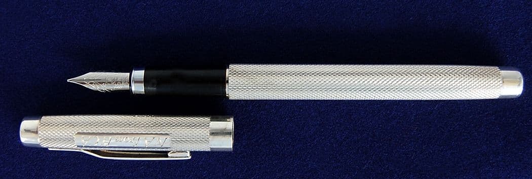 The Earl Fountain Pen is a contemporary looking pen using engine turning to create the lined pattern around the Fountain Pen.
